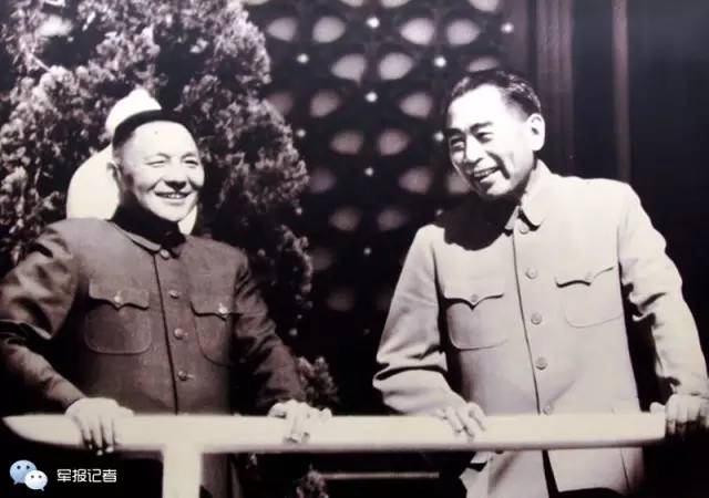 周恩来与邓小平在天安门城楼上。