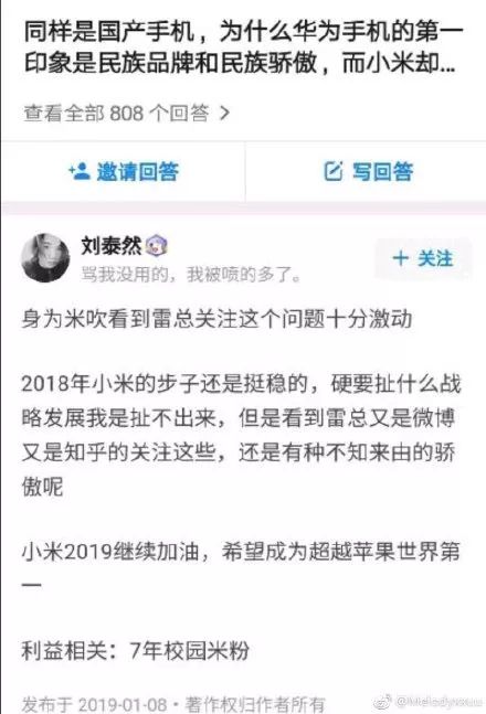 此外,在这个爆料微博下面的评论中,还有吃瓜群众找到了刘泰然在知乎上的回答,他自称是7年校园米粉。