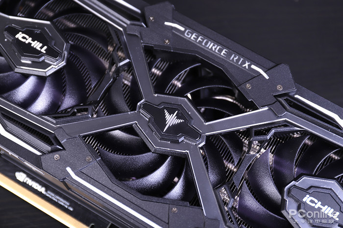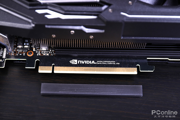 在这块显卡上也很稀罕的看到英伟达的logo,这代表显卡使用的是公版PCB,也是让超大陆感到意外的地方。