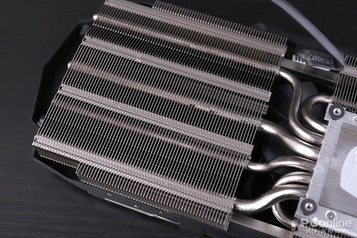 标配的9cm三风扇散热模块,转速稍微高一点,鳍片数量也相对较多。