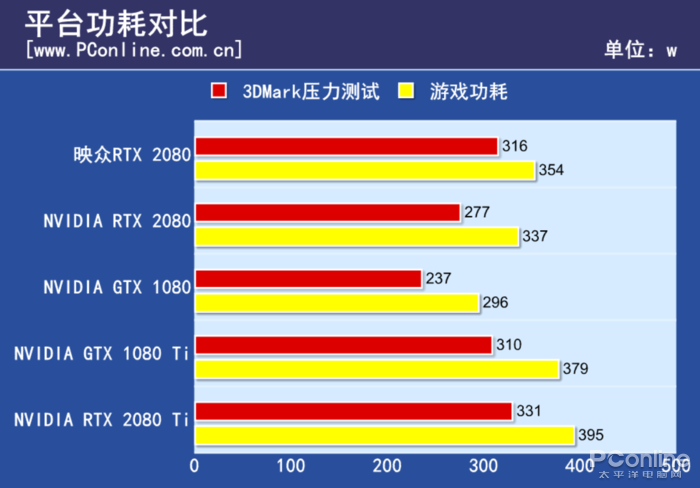因为无法测试单块显卡功耗,这里测试的是整机功耗,因为只更换显卡记录功耗,整机功耗变动就只有显卡这个变量了。
