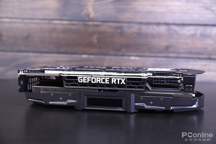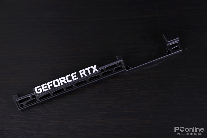 GEFORCE RTX的logo没有刻在散热器上,而是特意做成了一条金属棒子,超大陆拿在手上感觉挺沉的,砸到人就不好了。
