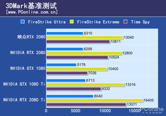 映众GeForce RTX 2080 冰龙超级版分别在三项测试中领先公版0.2%、1.9%和2.7%,这里FSU的分领先幅度很低,多次测试后结果依旧,公版PCB的对决,提升主要还是来自于频率。