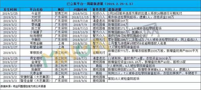 据鸣金网统计,本周(2019.2.25-3.3)P2P网贷行业共有17家已被立案的平台被警方通告最新进展,较上周通告数量增加了4家。