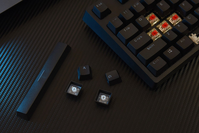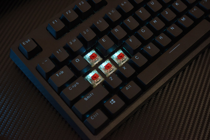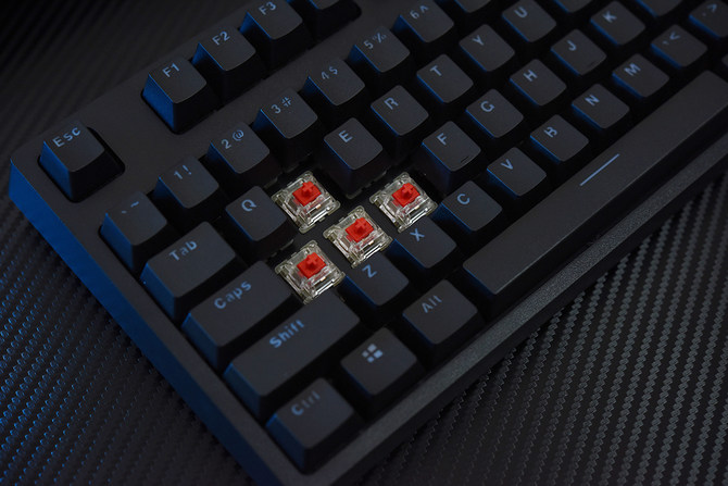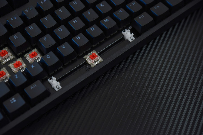 长轴体方面还是采用常见的平衡杆+卫星轴的设计,在空格键这样的长键位上手感不可避免的会偏软一些,而Shift键等键位手感则相差不大。