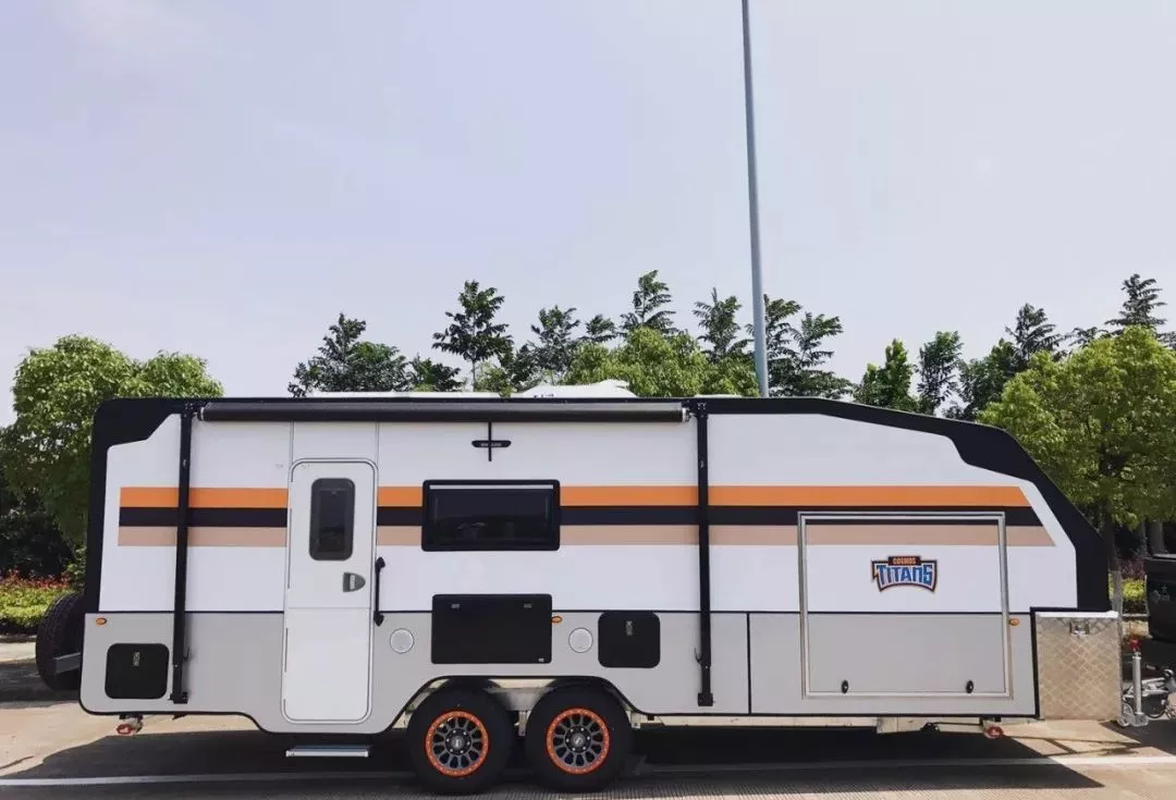 科斯——泰坦拖挂房车!该车外形时尚酷炫,采用极简的欧洲工业风打造,线条优美吸引眼球,做工精良配置一应俱全;这绝对是国内少有的一款能合法上牌、上路的大型拖挂房车