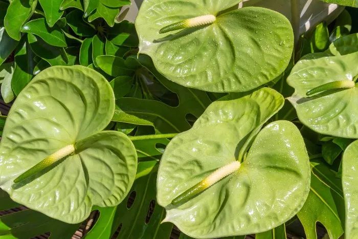 红掌花朵的苞片通常都是红色或粉色的,粉色的一般都被叫做粉掌或粉冠军,但很少朋友会知道,其实红掌还有白色和绿色的花朵,红掌的品种非常多,现在已经培育出六百多个品种,花朵上甚至有斑斓的纹路。