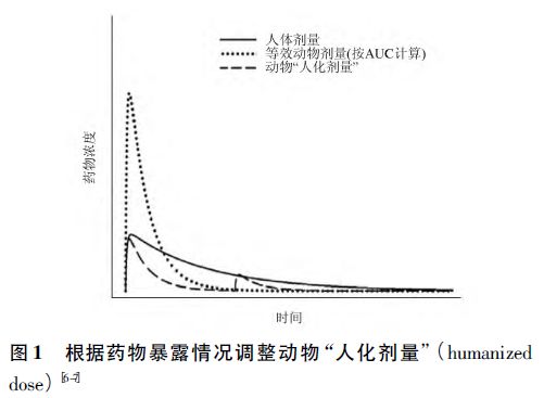 按人体内药-时曲线特征调整后的动物给药剂量被称为“人化剂量”( humanized dose) 。