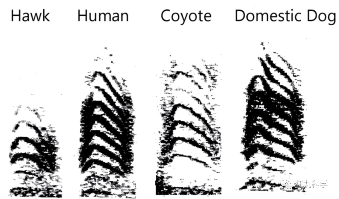 遇见鹰、人类、郊狼、家养犬时不同声波分析