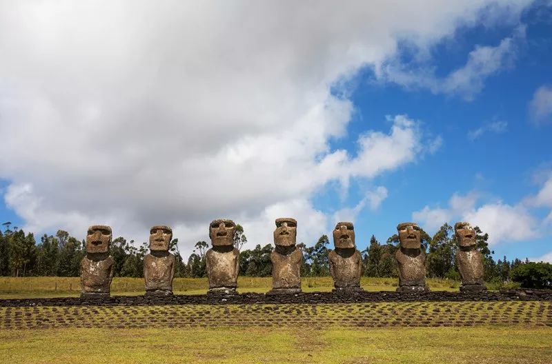 岛上最壮观的摩艾石像群非东岸的 Ahu Tongariki 莫属,这些石像位于海边,面对 Rano Raraku 采石场。这里也是复活节岛的地标,15 座摩艾,高矮胖瘦,神态各异,据说它们代表岛上的不同部落。