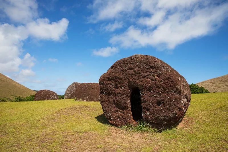 人们在采石场采石、雕刻都是纯粹依靠双手和石制工具,效率非常低。但在一千多年前的部落生活中,人们最不缺的恐怕就是时间。雕刻完成的石像和底座“阿胡”(每个底座可以放置约10~15个石像)加在一起重达几十吨,那时的人们如何依靠人力将它们搬运到岛上的不同位置,并竖立起来,这是我最大的疑惑。不过,已经有考古学家从石像表面的凹痕,了解到先民竖立石雕的方法——先在石像上挖出深约1公尺的大洞,再通过杠杆原理撑起石雕。
