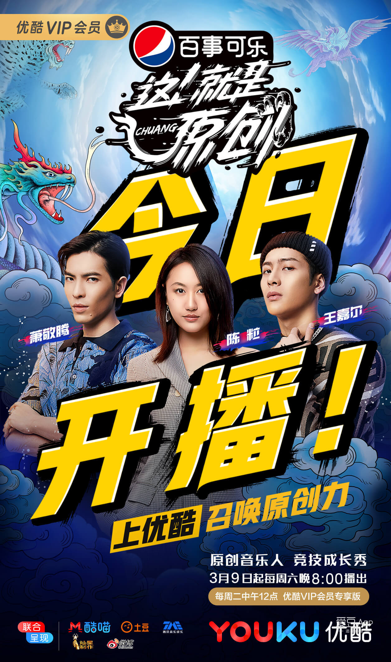 今天晚上8点,由优酷携手腾讯音乐娱乐集团、灿星制作联合出品的百事可乐《这就是原创》将在优酷准时上线。“原创捕手”萧敬腾、陈粒、王嘉尔将正式开启原创之旅,寻找最优秀的原创音乐人,给观众带来全新的视听体验。