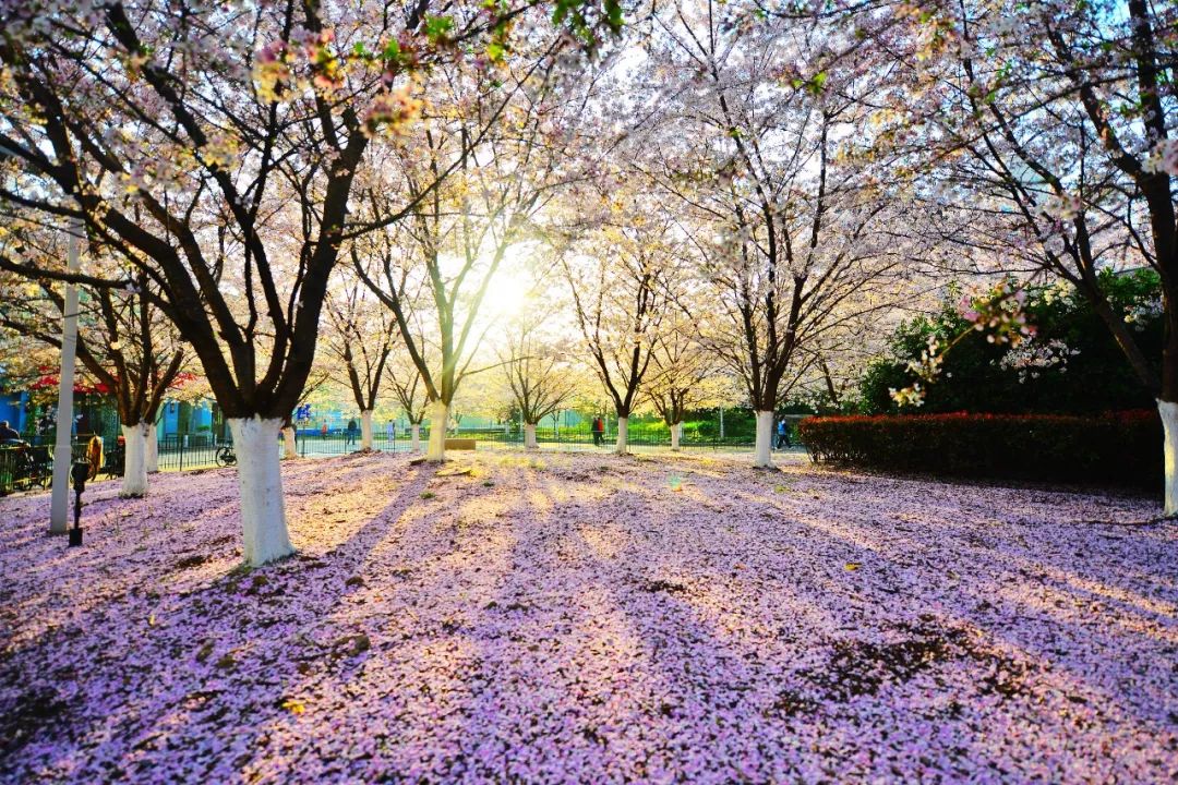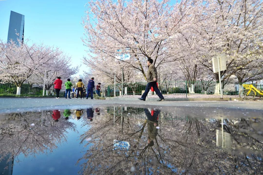 每年樱花盛开的季节,樱花霸屏,粉嫩到犯规。花期七日,秒速五厘米的下落速度,不舍得错过。