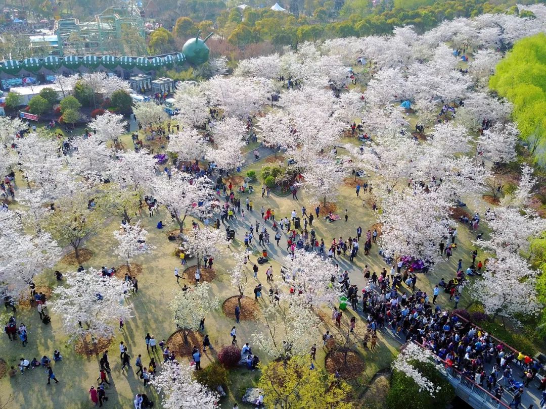 铺天盖地的樱花,樱花坡、樱花大道、樱花夹径、樱花群落、樱花木栈道、赏樱亭,好不热闹。上帝视角张张是大片,绿意江南被娇嫩的深浅不一的粉红色打晕了色板。