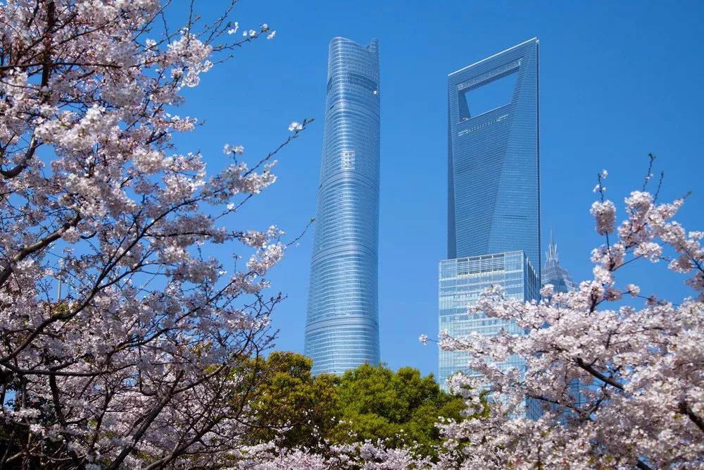 摩天高楼的现代立面作为背景的樱花赏,在魔都也算是独一无二的景了,让人联想起同样繁华的东京。