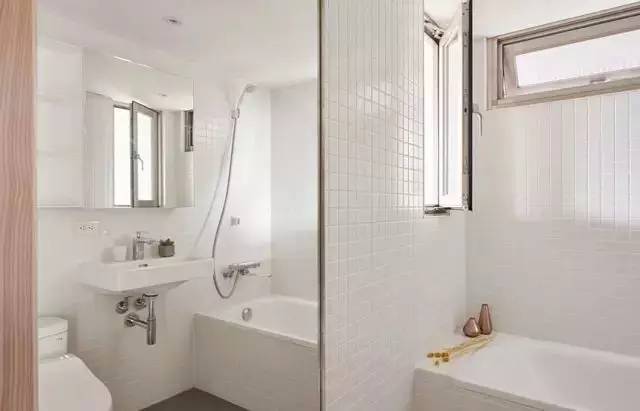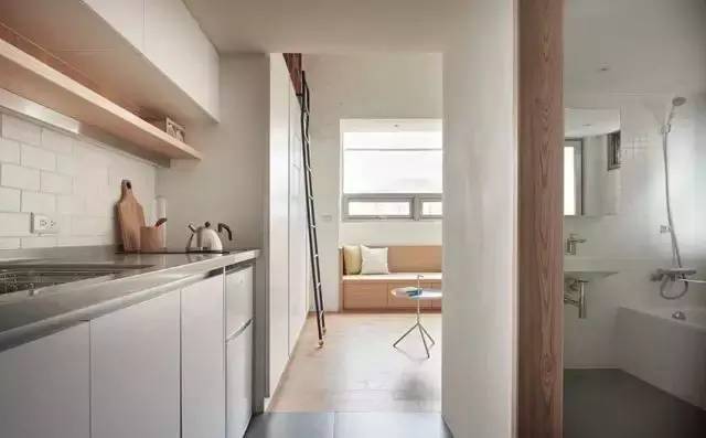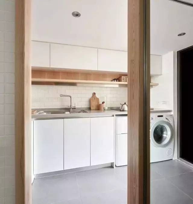 白色瓷砖让厨房和洗浴室显得更为洁净宽敞。