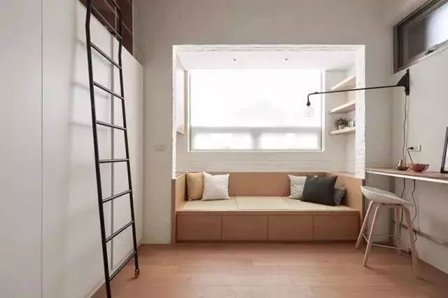 阳台的榻榻米设计,无论是自己平时的休闲还是与朋友一起的娱乐,都能很好满足,榻榻米也设计了收纳,更好满足整个小房子的收纳需求,工作区是夫妻两平时待的最多的地方,简洁温馨美好。