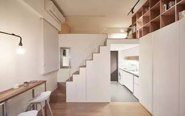 房子是阁楼复式设计,整个房屋设计以白色和原木色为主色调,十分淡雅,极具美感。