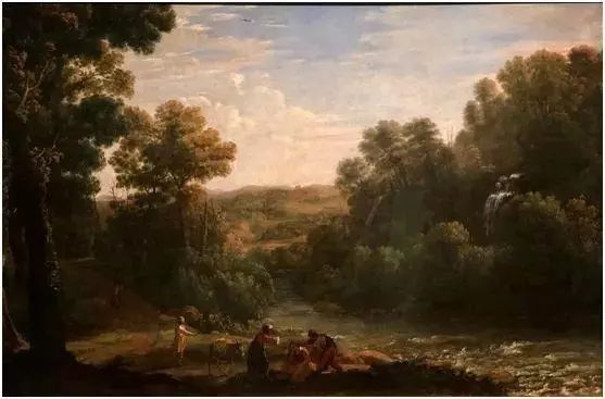 《溪水树林风景》描绘的是古希腊神话普赛克与丘比特的故事,以罗马近郊田野的风景为基础,无论是风景中的树木、溪流,还是人物,都体现了他的独特写实之处。