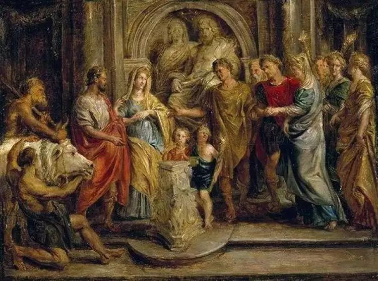 展厅中有幅《君士坦丁的婚姻》,虽是鲁本斯作品的草稿部分,但我们也能从画面中看出巴洛克极强的装饰性。