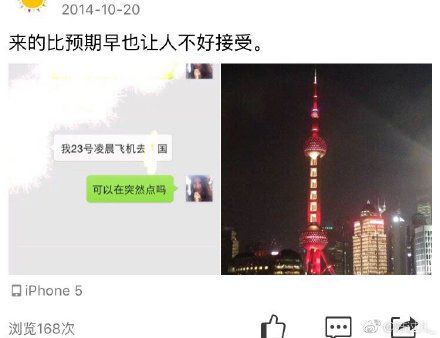星阳途中:异国近三年了,每次都是他飞来中国,终于见父母两次了,这次我手术,他也是很细心地照顾我,每次因为异国都会哭,每次想到美好未来还是坚持!异国很烧经费。。。就是