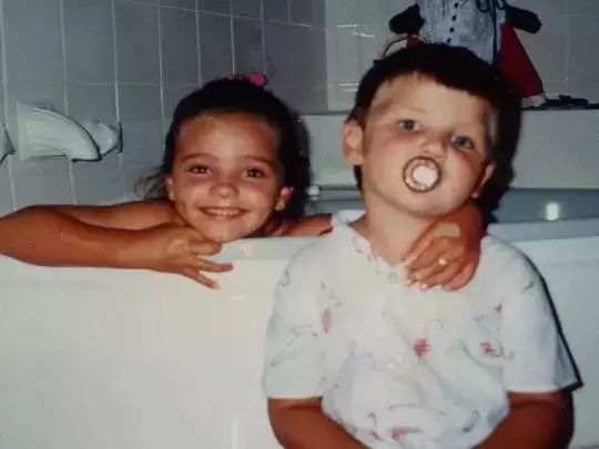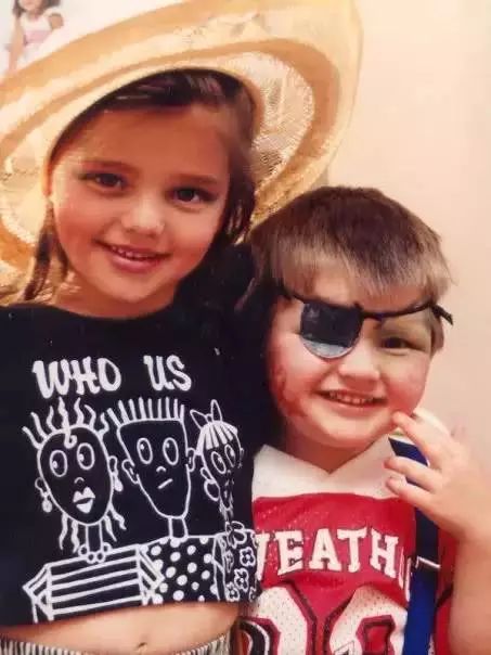 可儿小时候就有些婴儿肥,与弟弟Matthew Kerr一起玩耍。