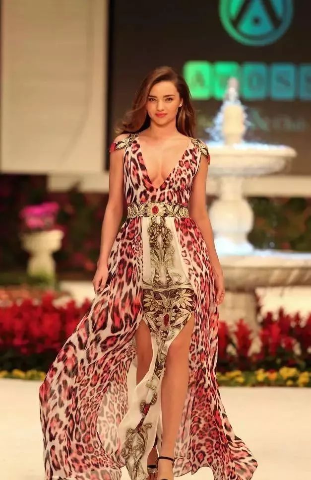 可儿Dosso Dossi走秀,飘逸的豹纹纱裙身姿摇曳。