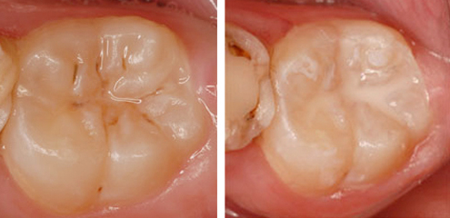 窝沟封闭是一种无痛、无创伤的方法,是指不损伤牙体组织,将窝沟封闭材料涂布于牙冠咬合面、颊舌面的窝沟点隙,当它流入并渗透窝沟后固化变硬,形成一层保护性的屏障,覆盖在窝沟上,能够阻止致龋菌及酸性代谢产物对牙体的侵蚀,以达到预防窝沟龋的目的。