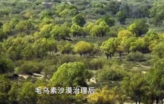 “毛乌素”在蒙古语言里面的意思是“坏水”,也就是不生长植物的地方。我们国家从1959年开始就对这一片沙漠进行治理,经过了60年的治理之后,毛乌素沙漠这片曾经荒无人烟的不毛之地变成了绿色王国。