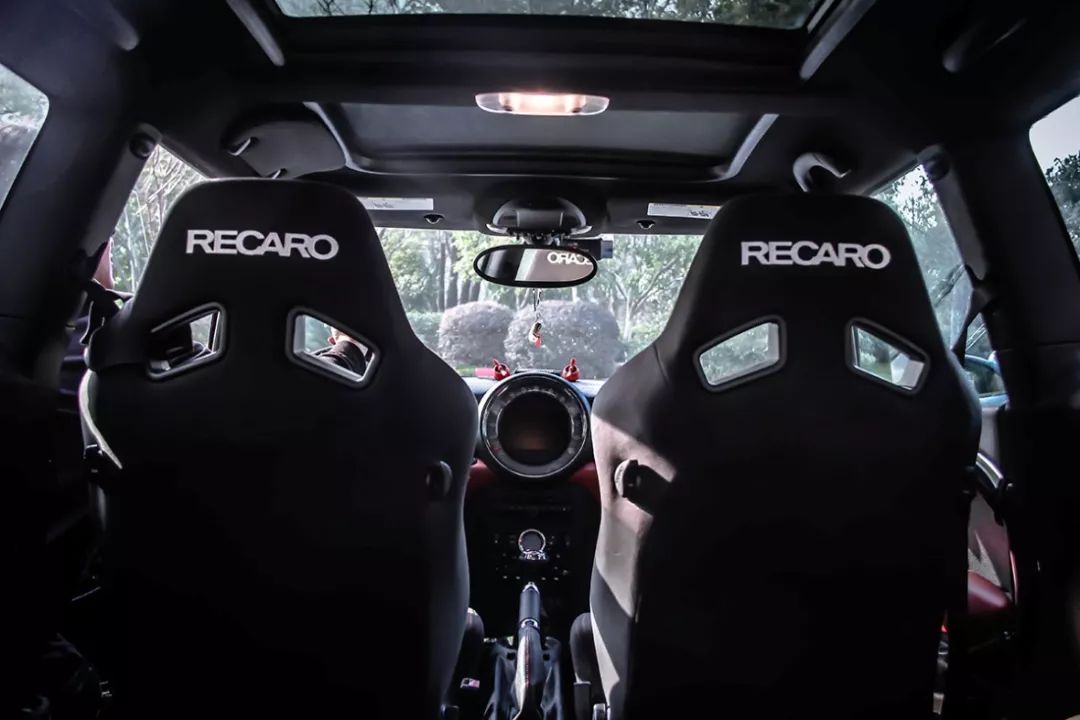 诸如AMG之于奔驰、M-Power之于宝马,JCW称得上是每一位MINI粉们的最高信仰。恰巧眼前这台车就是JCW,而且是一台手动设定JCW,可玩性不言而喻。首先来看看外观,经过全新的升级,包围来自于JCW 2.0的设计,车身颜色是重新喷涂过的定制黑色,灯光方面也是重新定义。虽然除了重度MINI粉儿之外,很难有人能凭外表就分辨出与普通Cooper S有什么不同,不过信仰终究是信仰,有能力充值时,一定要充!
