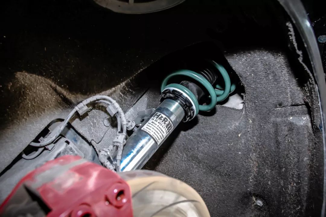 提升操控,绞牙避震是首选。拍摄之前,刚好在进行H&R避震的升级,顺手咔了几张图。簧下承载的是BBS RE锻造轮毂和米其林PS4轮胎,操控性立马提升一个台阶。同时,对于骨灰级玩家来讲,底盘上的强化也必不可少,毕竟对于偶尔要下赛道刷圈的车主来说,这方面的升级是相当的重要。