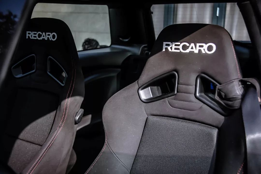 追求运动驾驶的车主,座椅是个必改项。Recaro SR7中国限量红线版,坐进车内那种强烈的包裹感让人驾驶欲激增。原厂GP2的后座套件,折叠起来很方便,情怀投资的又一体现。圆润的手排档把看着也是十分的诱人,不过它并不像外表看着那么的可爱,车技不好的还是不要随便尝试了。