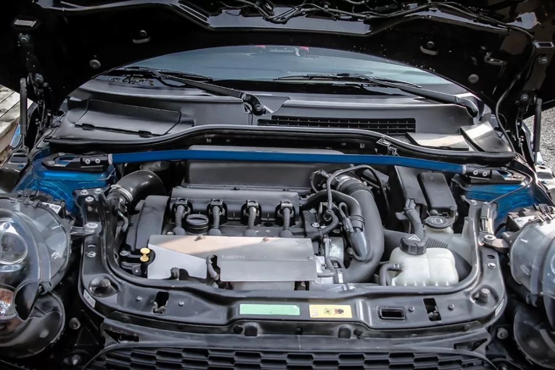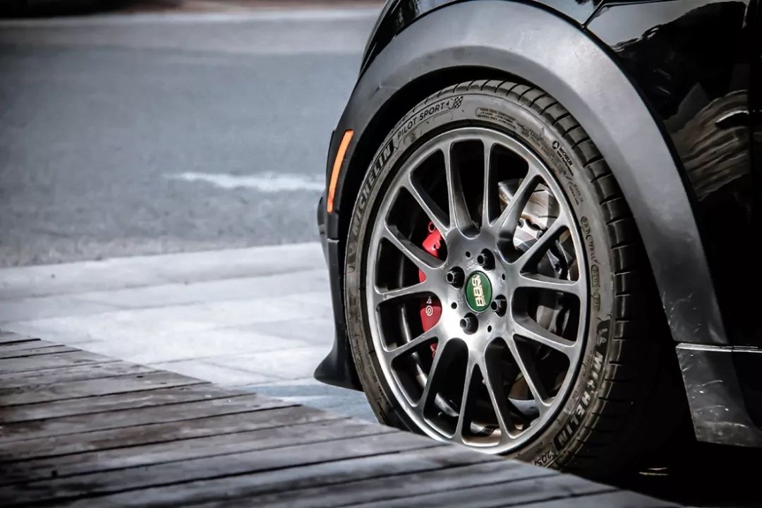 轮毂下隐藏的是Brembo红色制动卡钳,推测动力上肯定下了不少的工夫。不错,经过Manic Performance二阶ECU升级,发动机缸内锻造升级,高性能的点火、加大的涡轮中冷器,完美匹配的进排气升级,可以让你通过选择不同的驾驶模式,更加优化你眼前的这台R56 JCW。