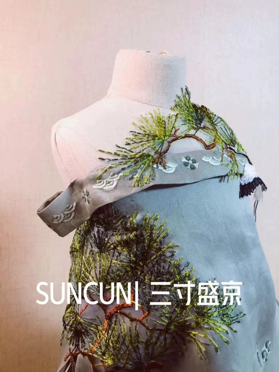三寸盛京成立于2015年,它的诞生来源于一份传承的力量。很多的中国传统面料、传统刺绣、传统工艺因为没有与现代生活接轨而即将失传,设计师用独特的设计手法将现代元素与中国传统元素相结合,他拜访了中国多位顶级手工艺人,投入大量的时间与资金打造新中式华服。