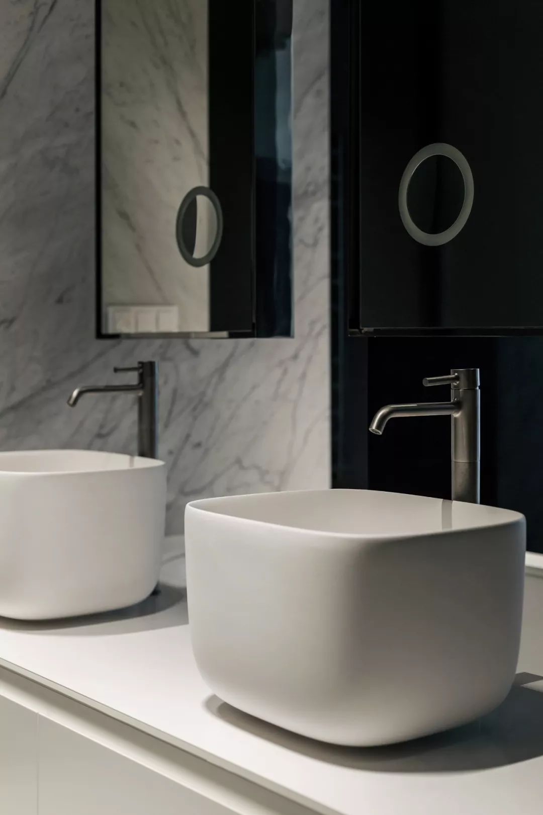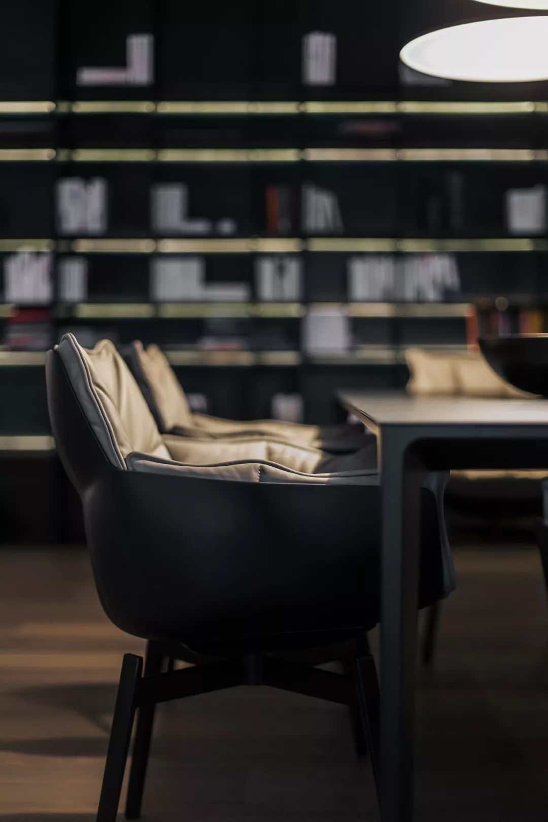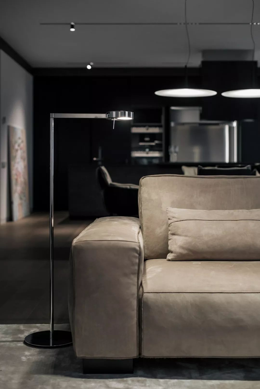 尽管如此,黑色家具常常有种过于冰冷的感觉,但其实只要抓住几个重点方式点缀,善用材质搭配,就能提高空间的温度,达到意想不到的效果。