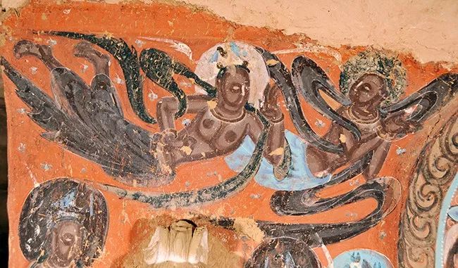 西千佛洞第7窟-西壁上方-天宫伎乐