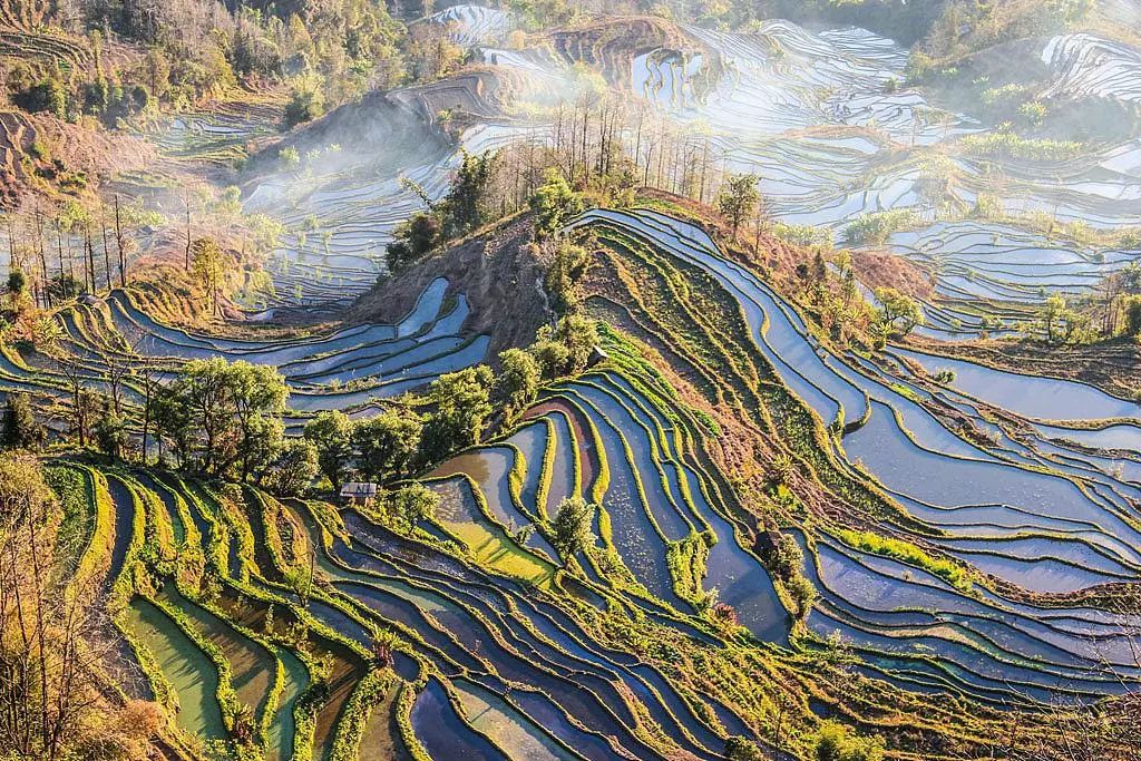 登上元阳随便哪一座山顶,呈长条环状的梯田绕山而行,从山脚至山顶,埂回堤转、阡陌连绵、重重叠叠,充满在大地之间的、那如山如海汹涌而来的都是梯田。