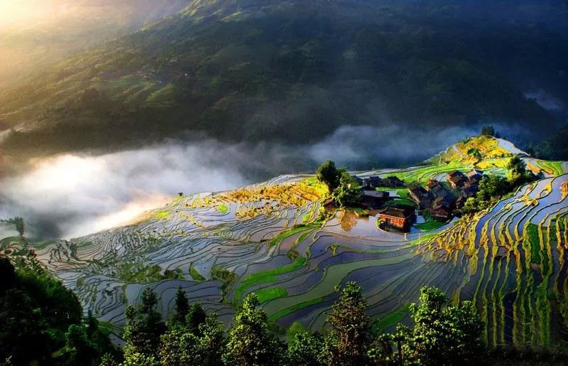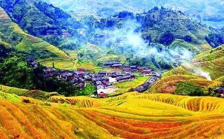 江河—森林—村寨—梯田四度同构的人与自然高度协调的的美丽家园,撼人心魄的世界奇观。