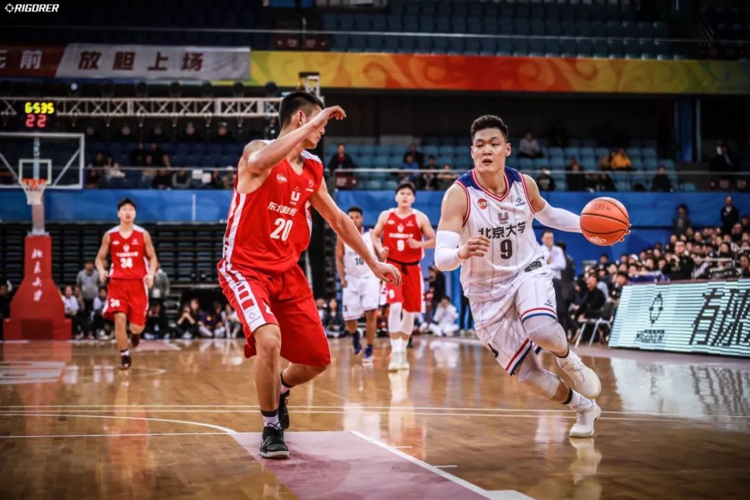 暂停回来,东北财大未见明显起色,反而是北大的祝铭震接管了比赛,他连中两记三分,紧接着又突破制造犯规,随着他两罚全中,北大开局打了东北财大一个12:0。