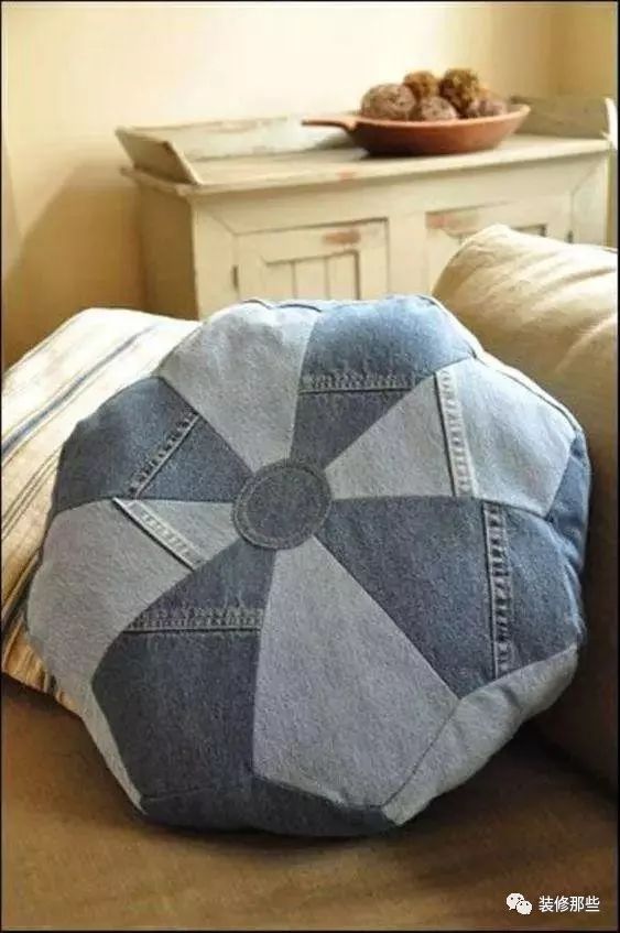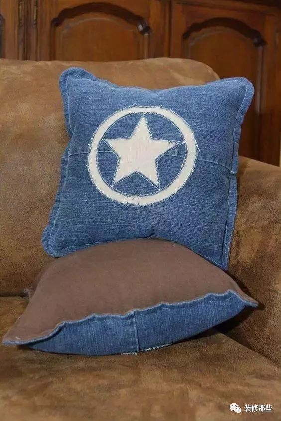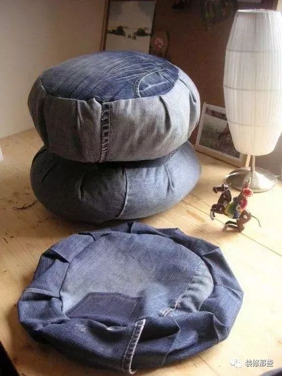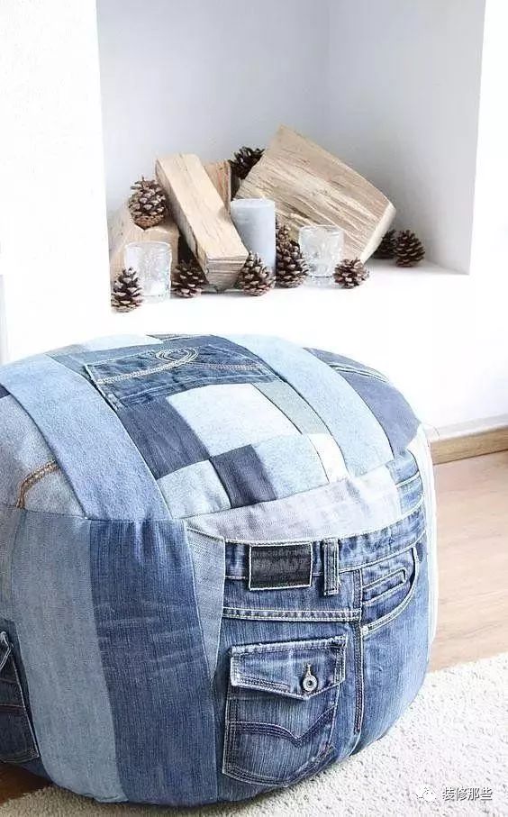 每次家里来朋友抱枕总是不够用,现在好啦,你可以把旧牛仔缝成你喜欢的形状,然后把剩下多余的面料塞进去,要是想软一点,你也可以塞点太空棉或者棉花进去。