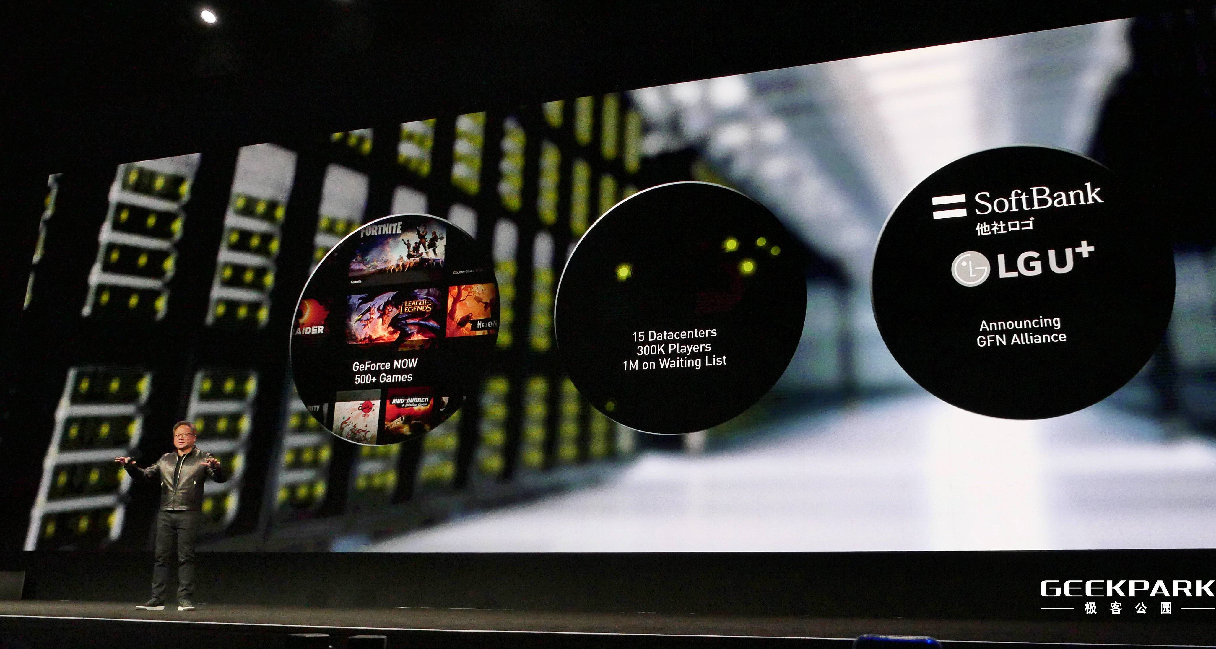 为了将游戏技术引入数据中心,黄教主也宣布了 GeForce Now 联盟。围绕专用吊舱构建,每个机架包含十个机架中的 1280 个 GPU,全部与 Mellanox 高速互连技术互连,通过与全球电信提供商的合作,扩展了 NVIDIA 的 GFN 在线游戏服务。黄教主说,GeForce NOW 联盟合作伙伴将共同扩展 GeForce NOW,为数百万玩家提供服务。软银和 LG Uplus 是部署 RTX 云游戏服务器的首批合作伙伴之一。