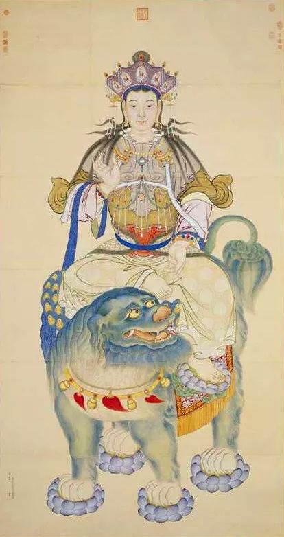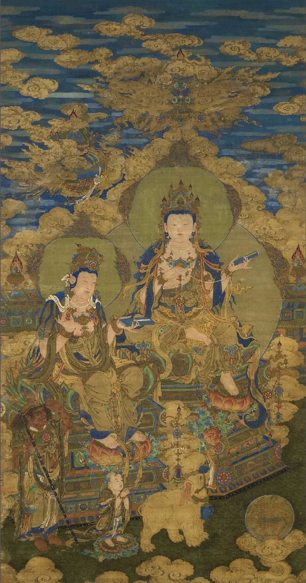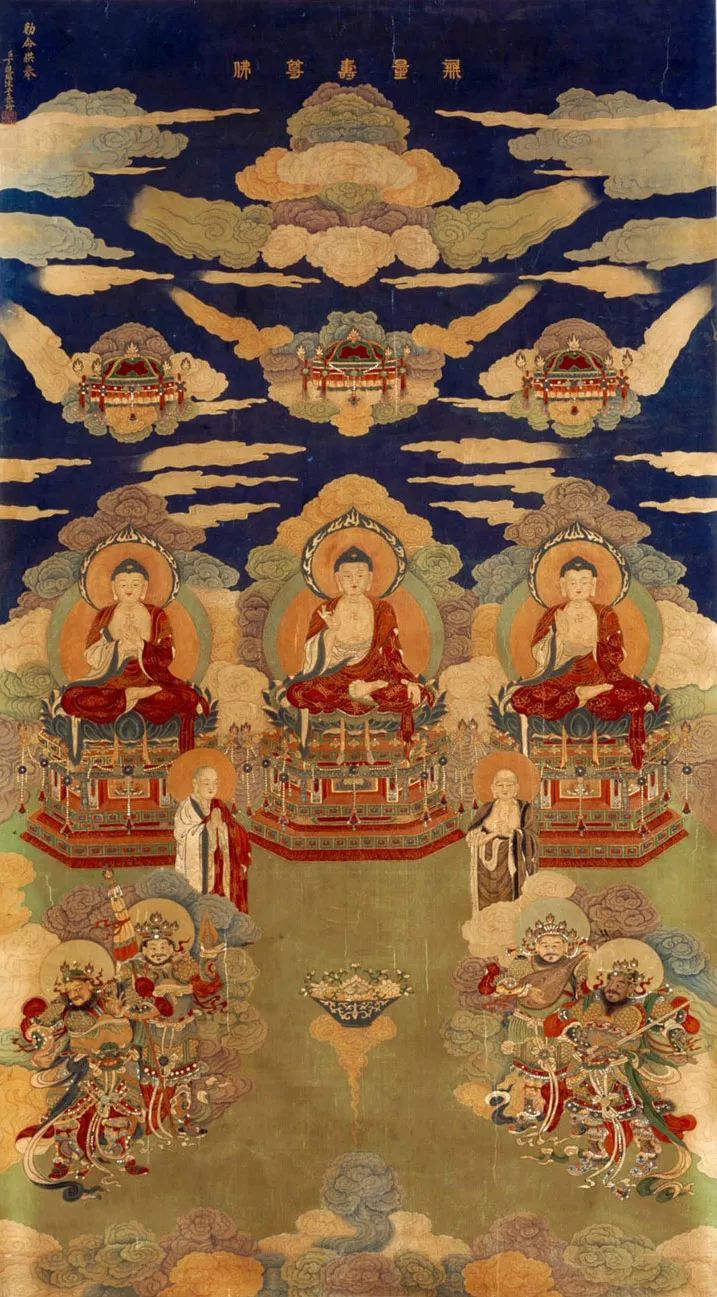 丁观鹏 无量寿佛图 瓷青纸金画 纵99.3厘米 横61.9厘米 北京故宫博物院藏