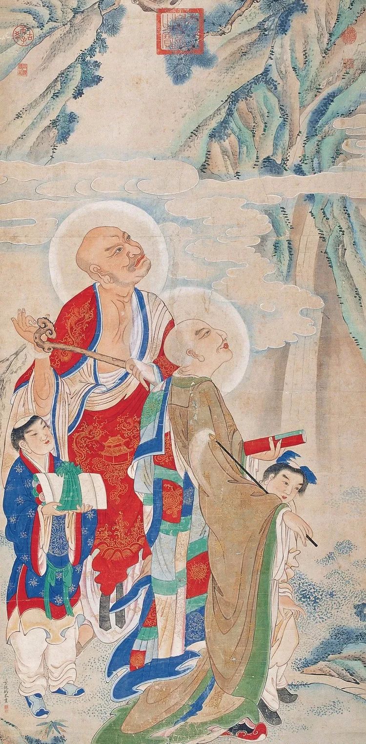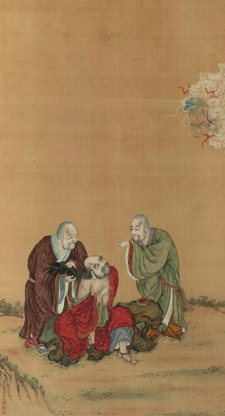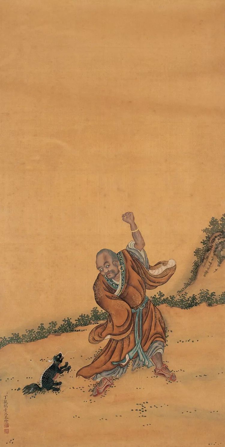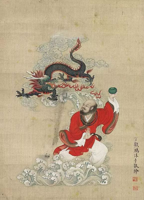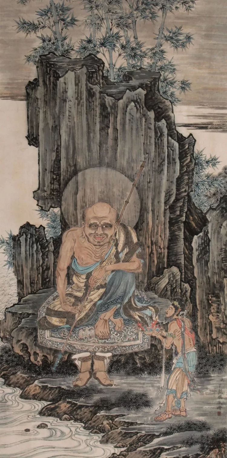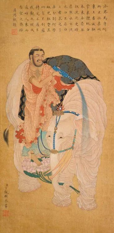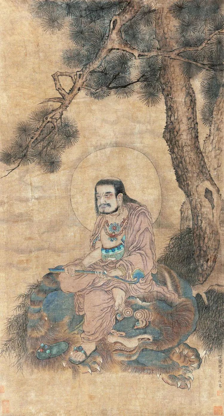 丁观鹏,康熙末期至乾隆中期的清代画家,顺天(今北京)人。胡敬《国朝院画录》谓:“观鹏克传家学。”工道释、人物,尤擅仙佛、神像,以宋人为法,不尚奇诡,学明代的丁云鹏笔法,有出蓝之誉。