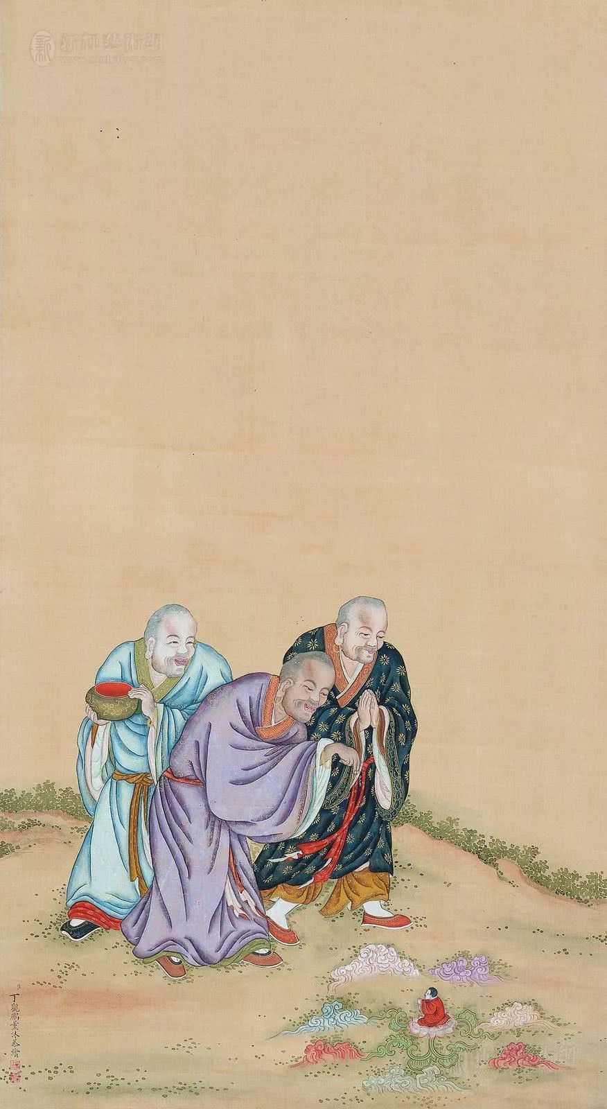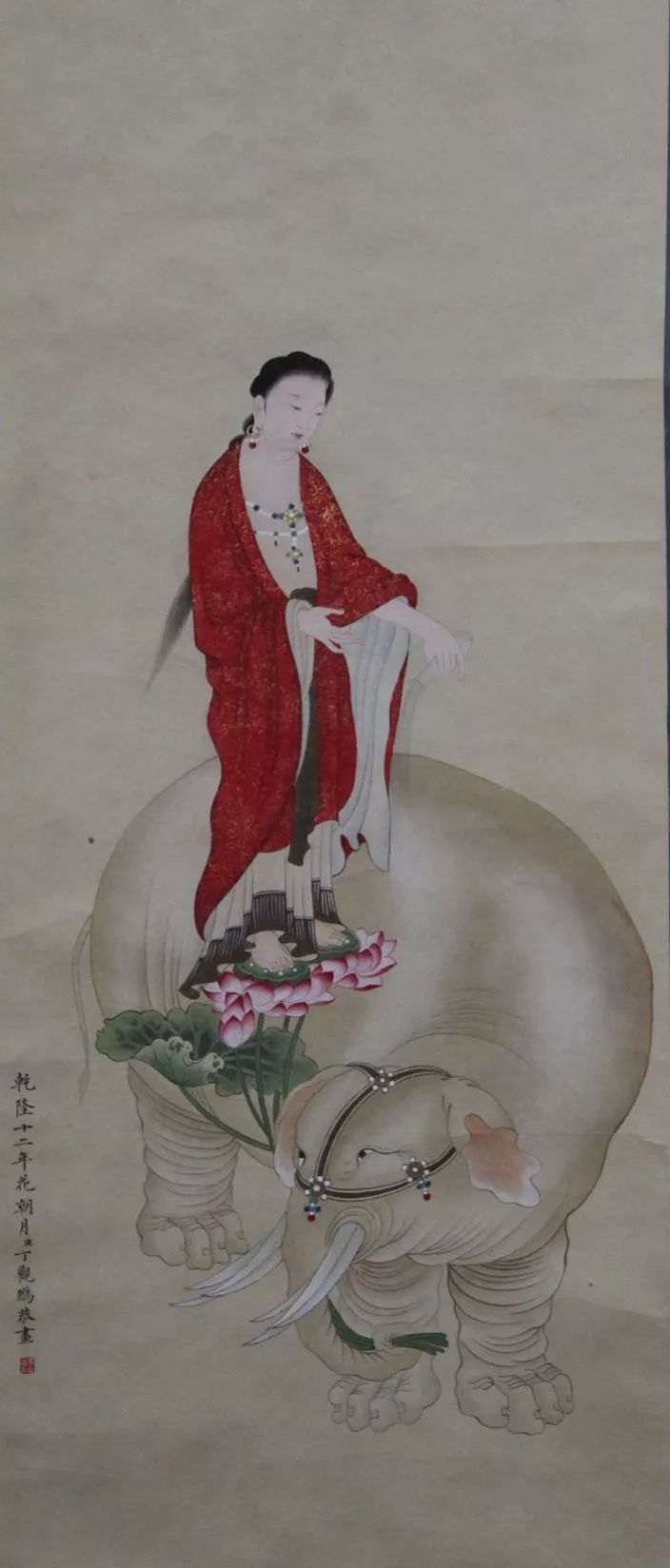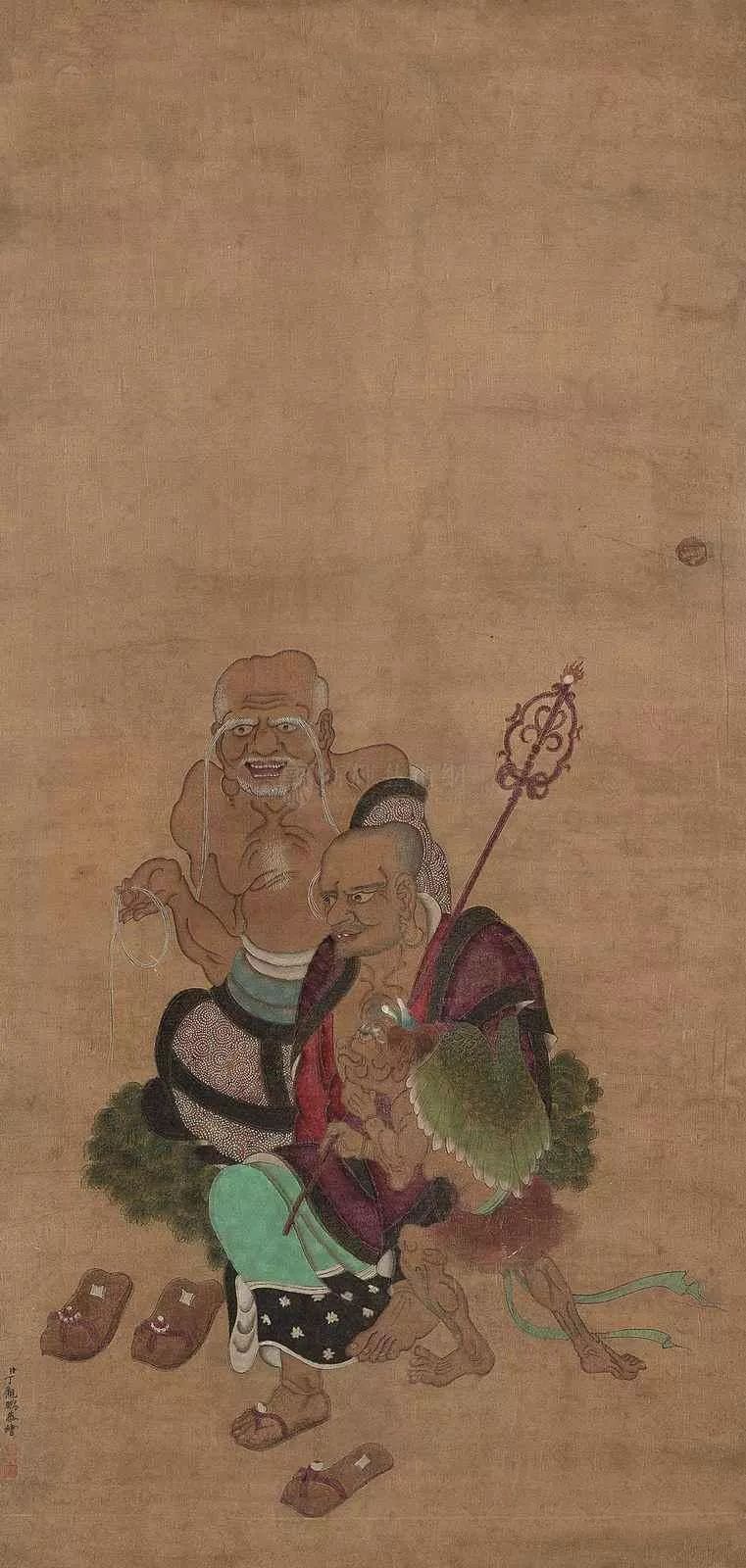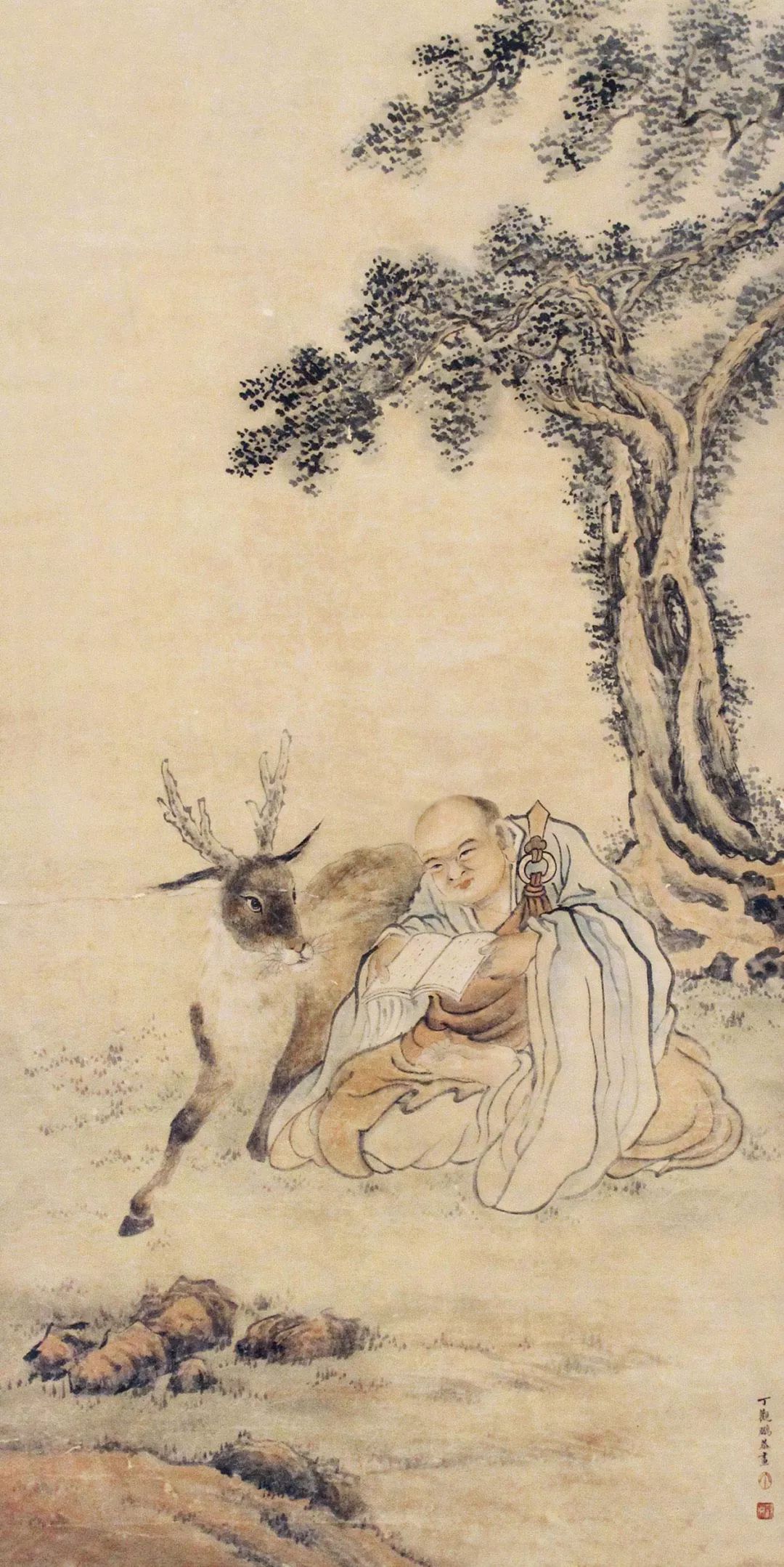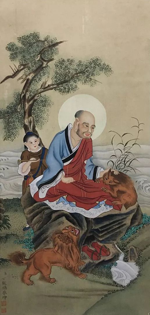丁观鹏,康熙末期至乾隆中期的清代画家,顺天(今北京)人。胡敬《国朝院画录》谓:“观鹏克传家学。”工道释、人物,尤擅仙佛、神像,以宋人为法,不尚奇诡,学明代的丁云鹏笔法,有出蓝之誉。