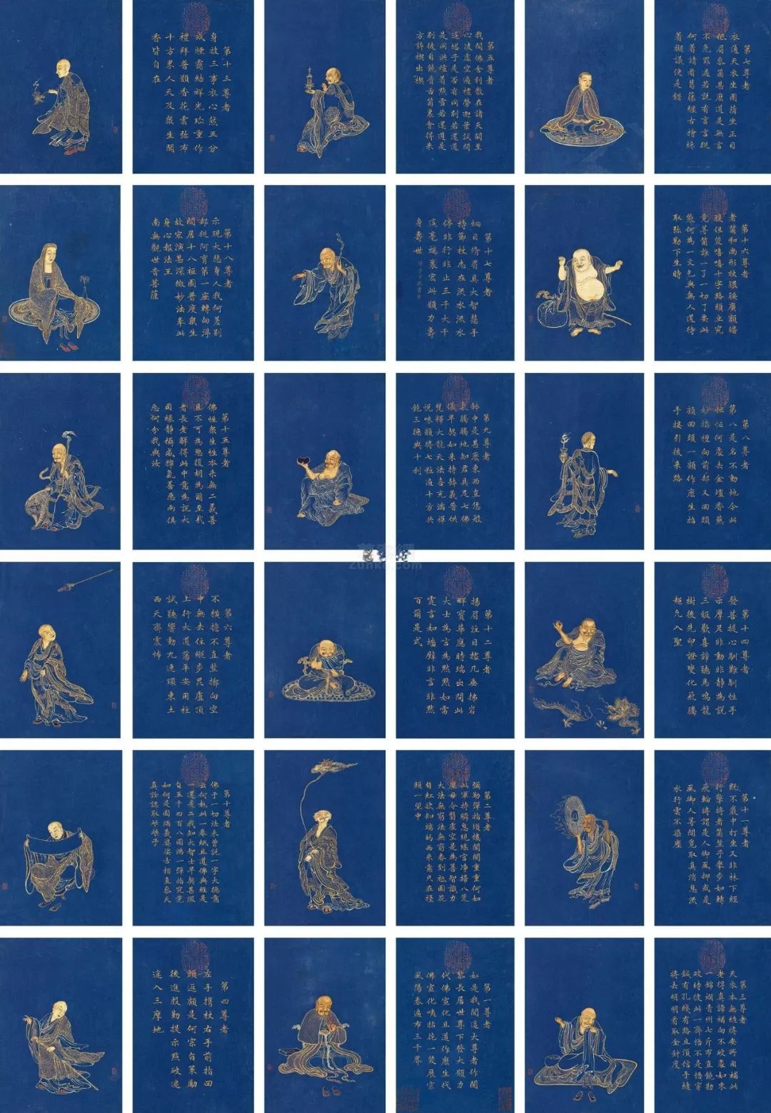 丁观鹏 十八罗汉册 册页 纸本