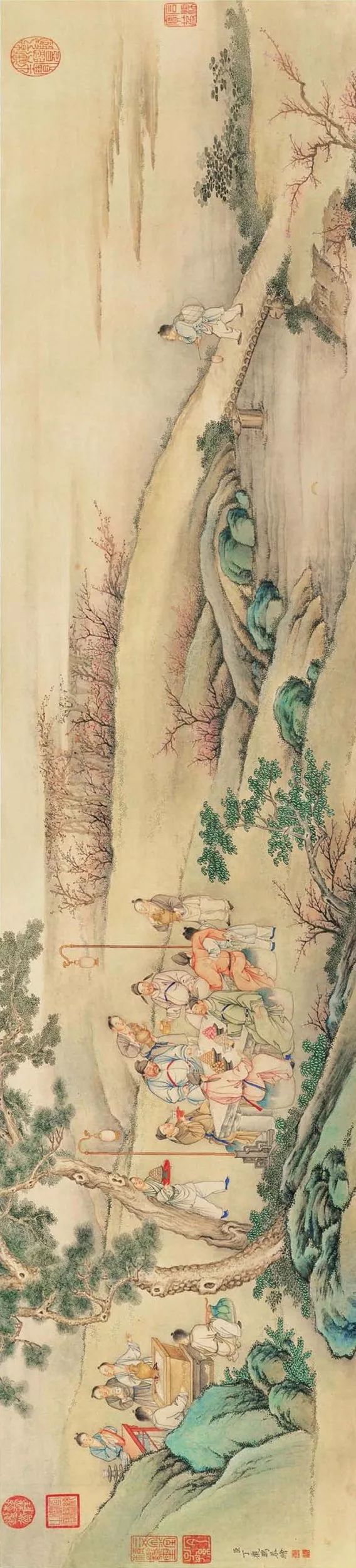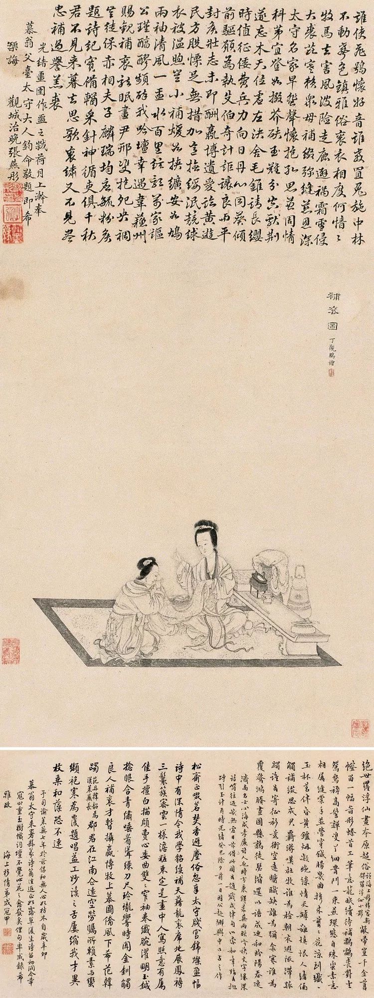 康乾盛世是清朝国力鼎盛时期, 清代绘画也随之走向繁盛,丁观鹏就是这一时期活跃在画坛上的著名宫廷画家。他在宫廷画院五十年左右,作品近二百件。作品大多在《秘殿朱林》《石渠宝笈》有著录。
