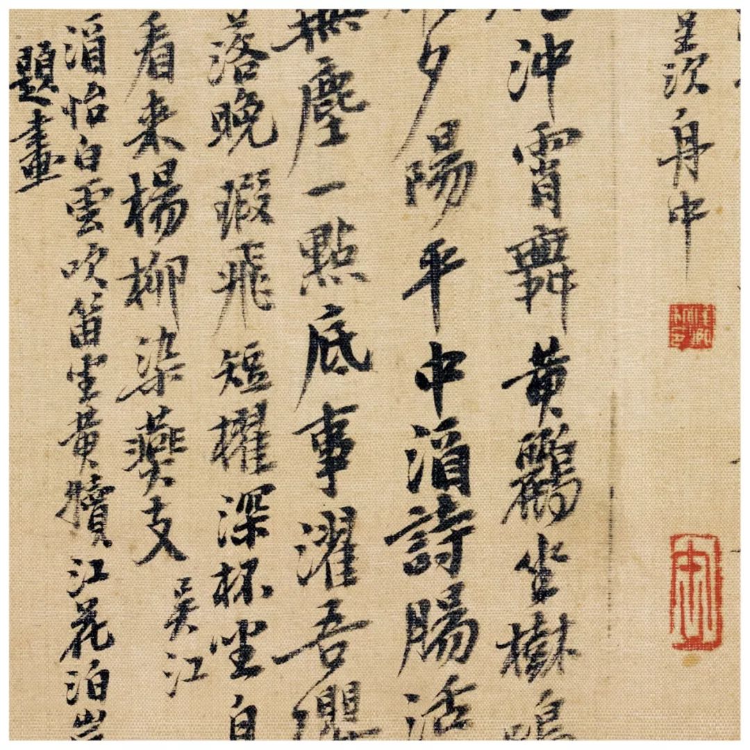 沽酒怡白云,吹笛坐黄犊。江花泊岸红,山雨下庭緑。题画。