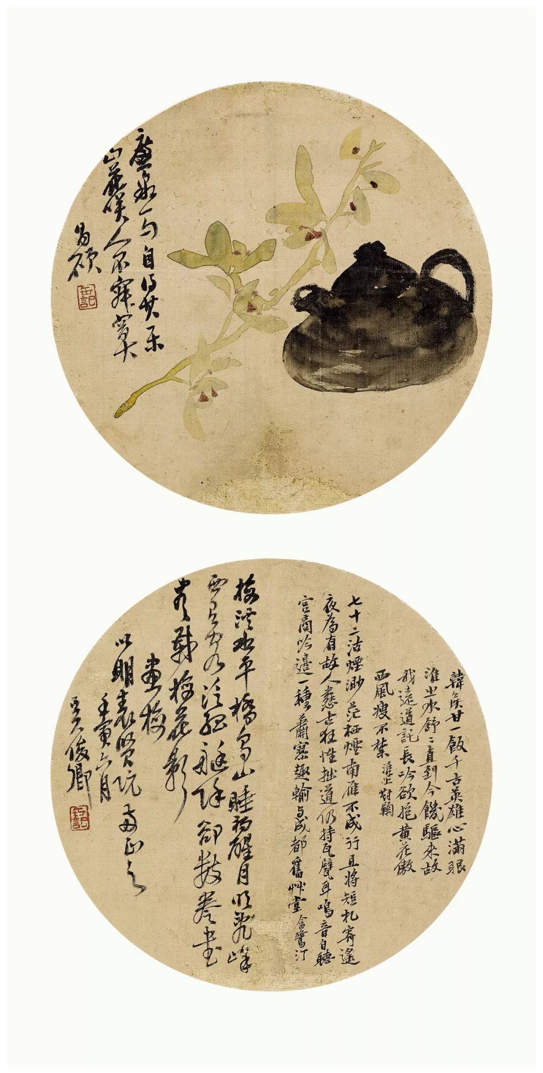 曼生司马刻茶具并诗于扇骨,鹿笙九兄臧之,索写是箑以自娱。昌硕又题。