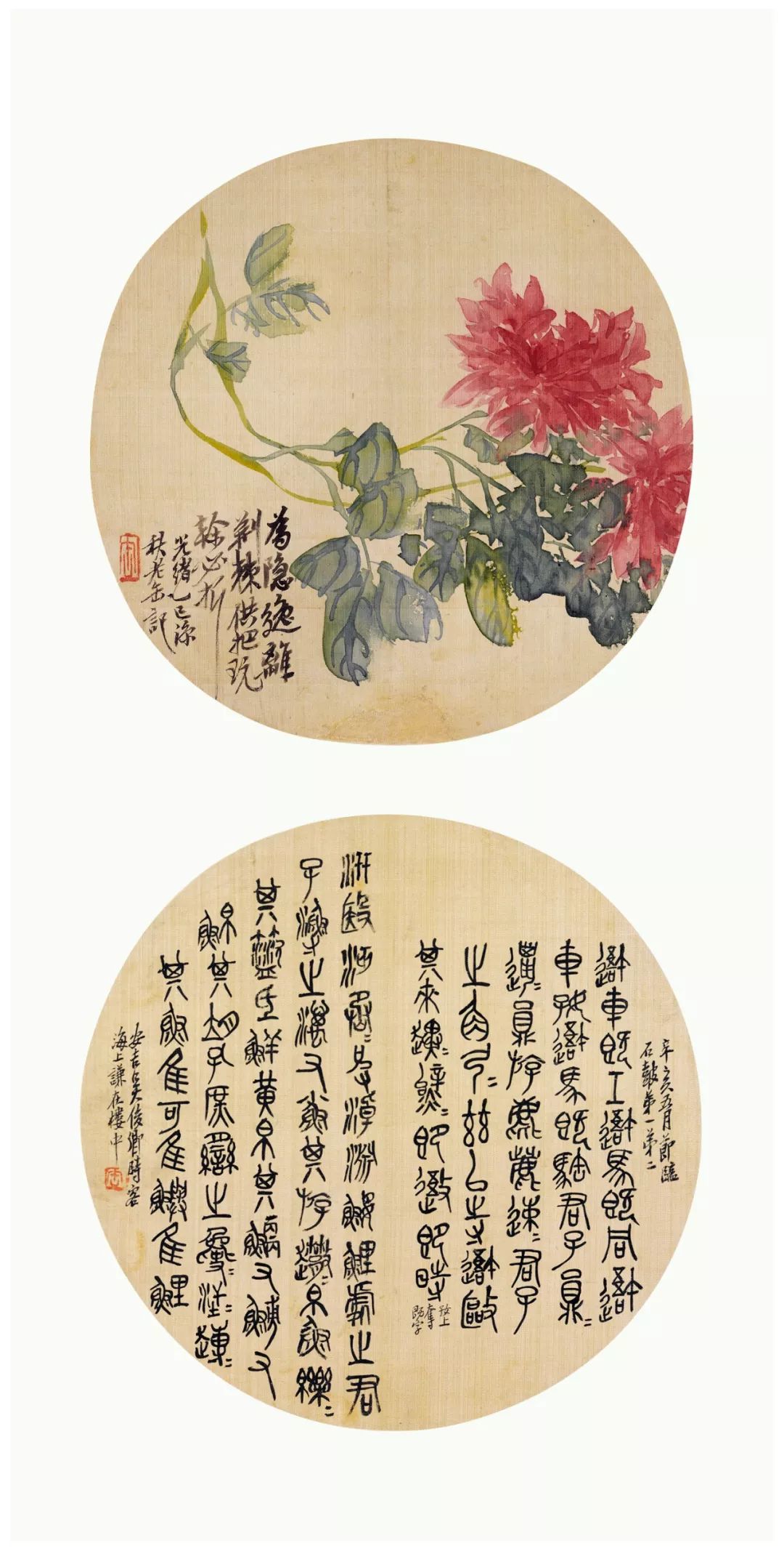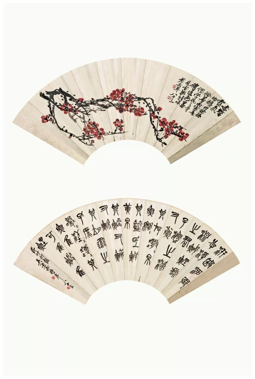 看完画扇,已经是无比惊叹老缶的笔墨、构图,
