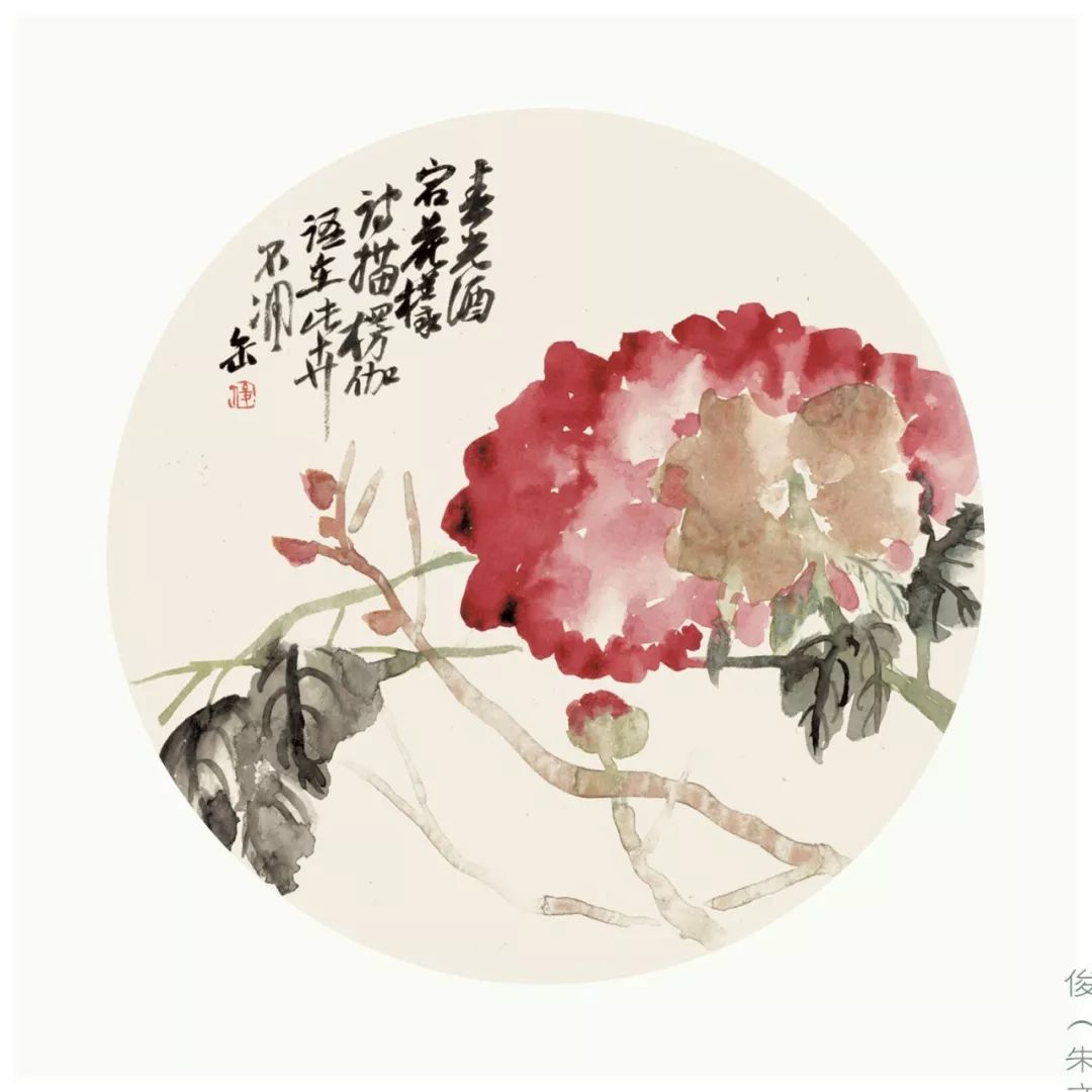 公之束先生属写妃子笑,为放戴石屏设色,而顾荼老以为极似张孟皋。丙午闰四月,病臂草草,俊卿记。